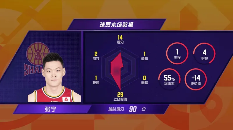 同样本轮伤愈复出的还有山西汾酒队后卫张宁。因伤缺席12场比赛后,张宁在客场对阵北京的比赛中回归。本场张宁出战30分钟,得到14分1篮板2助攻1抢断,正负值+14为全队最高。尤为关键的是,张宁在末节独得8分,最后阶段连续突破、跳投得分,再次于关键时刻助队取胜。